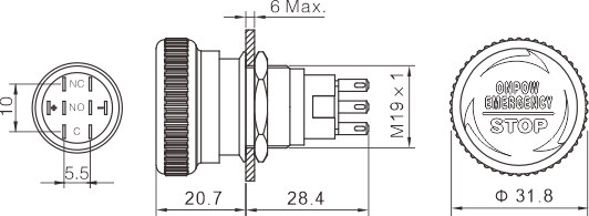 • 头部形状:急停钮C型